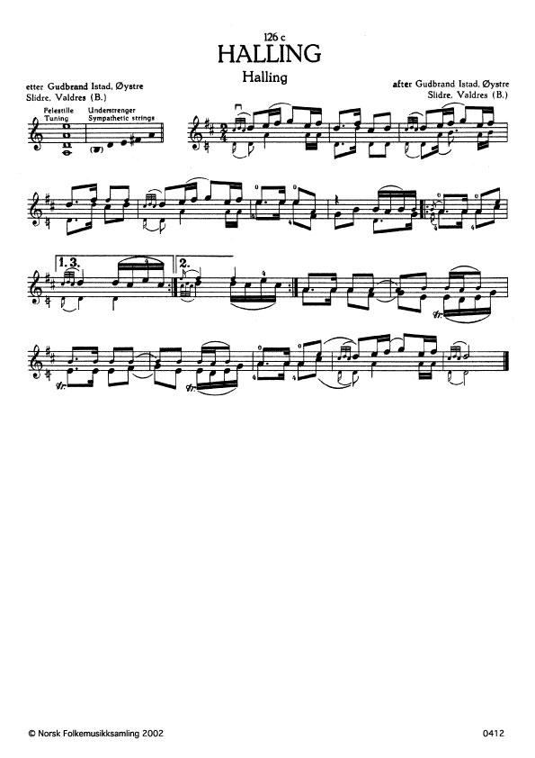 (Halling) B. 447. Oppskr. 1912. Istad lærde slåtten av Halvor Skatrud, Volbu, Øystre Slidre 1855. Skatrud døydde i USA 1894 kring 75 år gamal. Rim: "Guten han dansa og spratt på gølve, guten han dansa og spratt åt kleva".