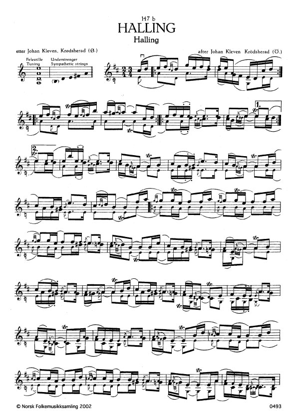 (Halling) Ø. 9. Oppskr. 1912. Kleven hadde slåtten etter faren Ola K. K. (Gammelkleven). Det er truleg den eldste forma ein har av denne slåtten.