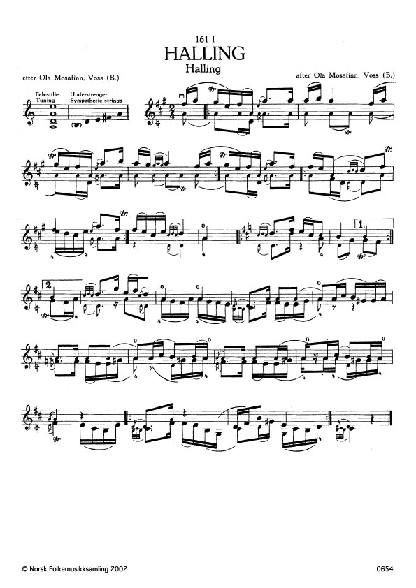 (Halling) B. 3. Oppskr. 1908. Mosafinn lærde slåtten av Anders Berge, Voss, Hordaland, i 1838. Slåtten vert ofte nytta som bruraslått. Sjå merknad til 155a.