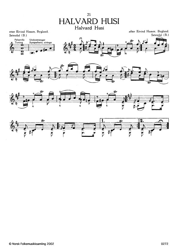(Halvard Husi) B. 402. Oppskr. 1917. Hamre hadde slåtten etter Eivind Åkhus, Ose, Setesdal. Slåttenamnet kjem frå rimet: "So sei' han Halvard Husi som fekk henne Anne Kvåli som va' både grei og snåli".