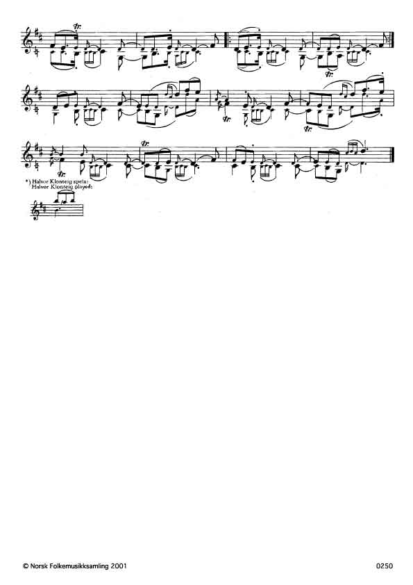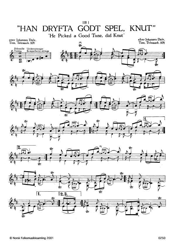 (Han dryfta godt spel) Ø. 383. Oppskr. I 951. Johannes Dale hadde slåtten etter farfar sin, Knut Dale, Tinn, Telemark. Dryfta = reinska.