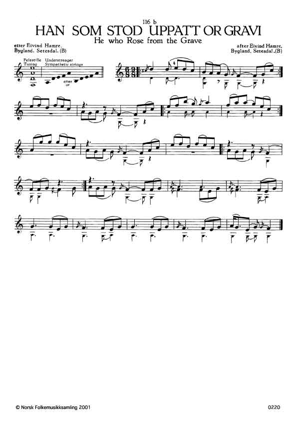 (Han som stod uppatt or gravi) B. 619. Oppskr. 1917. Hamre lærde slåtten av Torjus Odden, Bygland, Setesdal. Om slåttenamnet, sjå merknad til 116a.