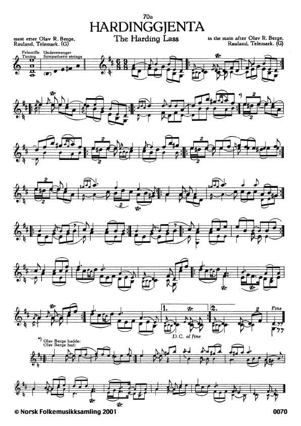 (Hardinggjenta) G. 549. Oppskr. 1919 etter minnet. 70a og b er variantar. Jfr.B.811 og 846. Nordbø 85. G 621.