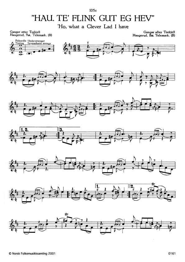 ("Hau, te' flink gut eg hev") B. 2385. Oppskr. 1911. Haugerud hadde slåtten etter Gregar Saga, Bø, Telemark.