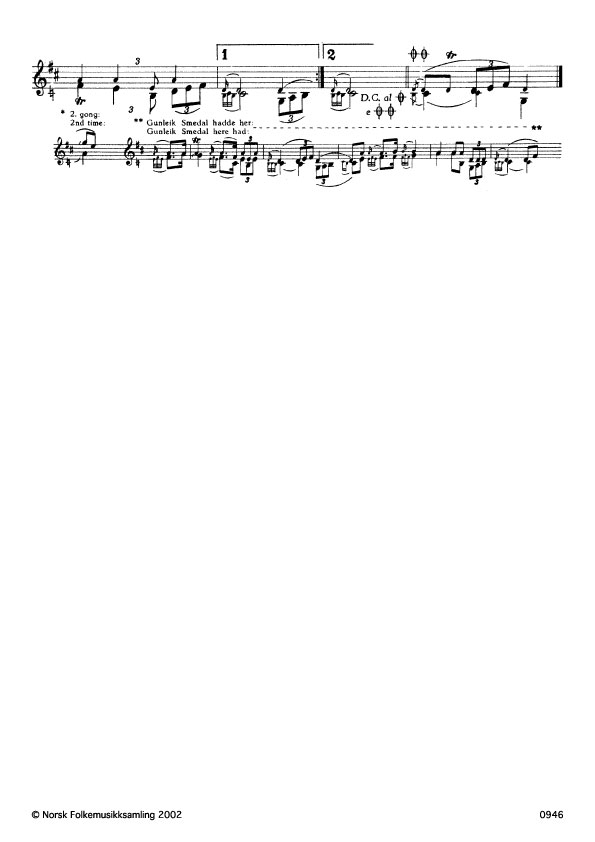 (Håvards minne) G. 1287. Oppskr. 1961. Dale hadde slåtten etter godfar sin, Knut Dale, som hadde lært han av Myllarguten kring 1860. Jfr. B. 563, Ø. 131 og 278 og G. 563.