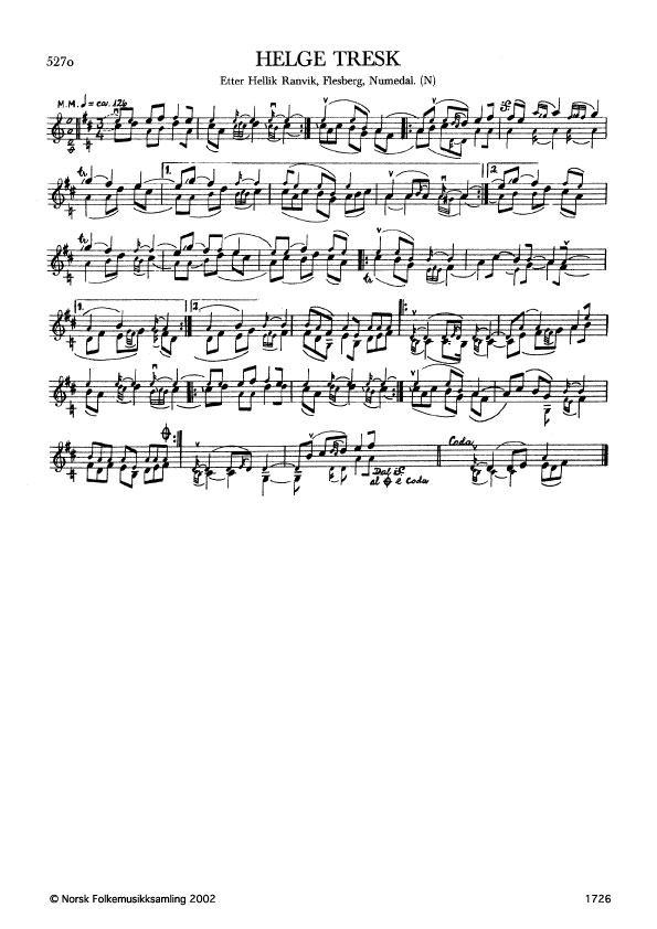 Helge Tresk. Etter Hellik Ranvik, Flesberg, Numedal. N. 1977. Td. 1615. Usikre detaljar i oppskrifta p.g.a. teknisk dårleg opptak.