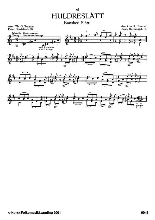 (Huldreslått) B. 460. Oppskr. 1927. Slåtten hadde Skåtun lært av Torbjørn Opsalnes, Fusa, som døydde 1880, kring 80 år gamal.