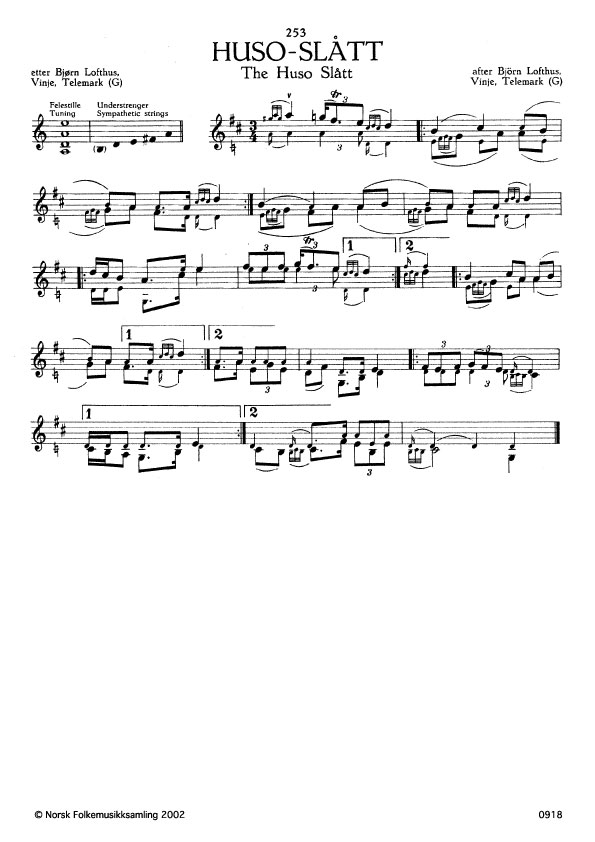 (Huso-slått) G. 667. Oppskr. 1921. Huso ligg i Mo, Telemark. Siste taket i slåtten har Bægjuven òg.