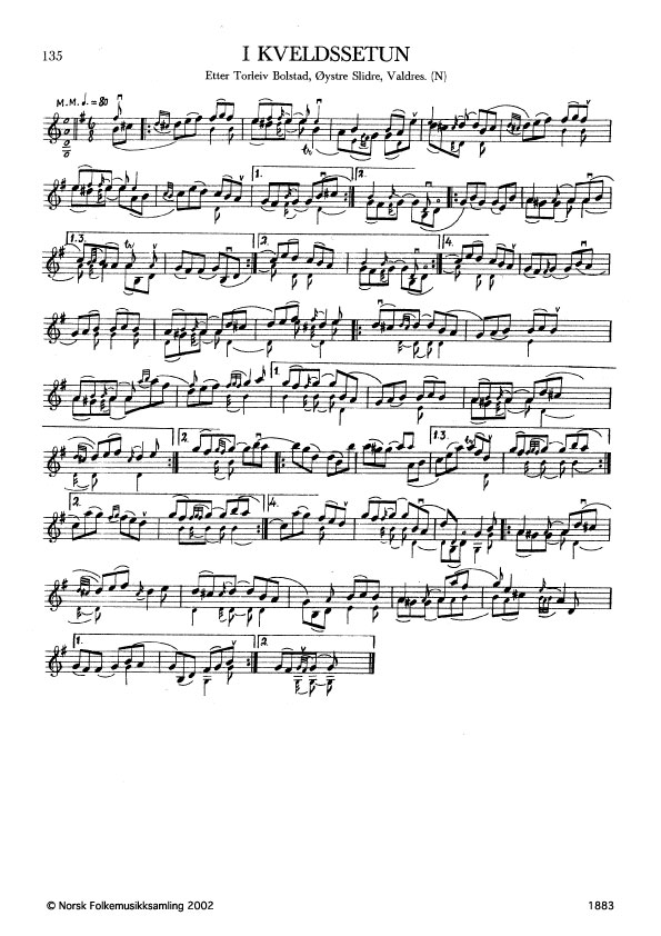 I kveldssetun. Etter Torleiv Bolstad, Øystre Slidre, Valdres. N. 1978. TLS 2022 (grammofon). Td. 1888. Slåtten er laga av Ola Okshovd. Andre variantar: G. 1521, 1964 etter Torleiv Bolstad.