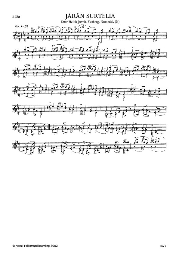 Jårån Surtelia. Etter Hellik Juveli, Flesberg, Numedal. N. 1975. Td. 1535. Juveli lærde slåtten av Ole Nærlieie, Flesberg.