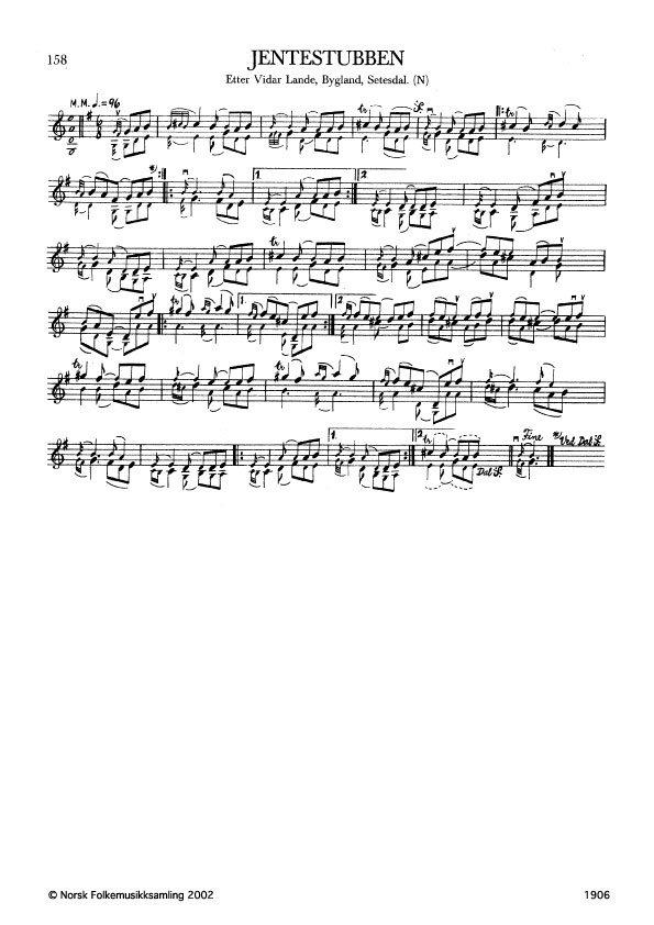 Jentestubben. Etter Vidar Lande, Bygland, Setesdal. N. 1978. Td. 1861. Lande lærte slåtten av Tor Sandnes, som hadde han frå Eivind Aakhus. Slåtten blei sunge og dansa av jentene på Frøyrak når dei venta spelemann.