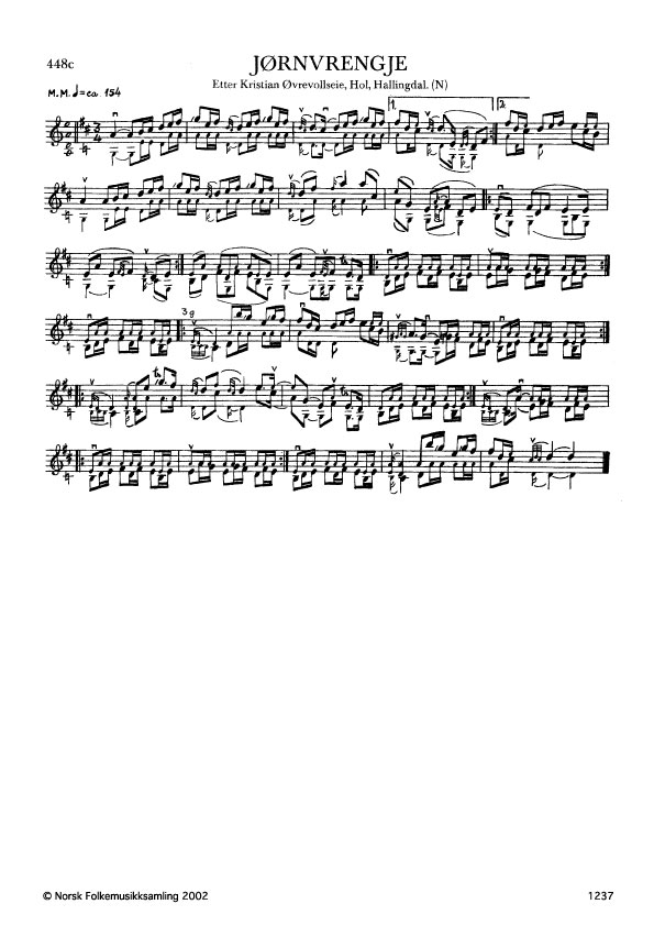 Jørnvrengje. Etter Kristian Øvrevollseie, Hol, Hallingdal. N. 1975. Td. 1443. Andre variantar: Ø. 337, Skjegle-Jørn, etter J. Kleven; B. 451, Rengja, etter U. Jensestogun; B. 111, Skakaren, etter O. Mosafinn.