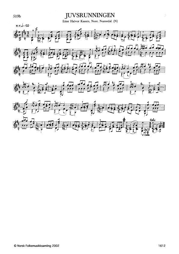 Juvsrunningen. Etter Halvor Kaasin, Nore, Numedal. N. 1975. Td. 1594. Kaasin lærte slåtten av Steingrim Haukjem. Namnet er truleg etter spelemannen Halvor Solum frå Juvsrønningen i Eggedal som utvandra til Amerika i 1886. Haukjem kalla og slåtten for Sandbekkens minne. Andre variantar: G. 1182, 1960.