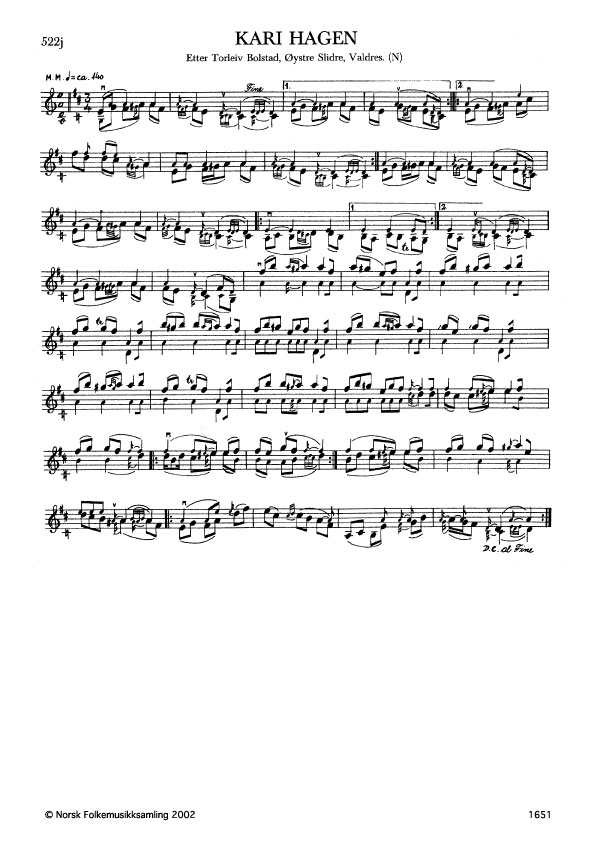 Kari Hagen. Etter Torleiv Bolstad, Øystre Slidre, Valdres. N. 1976. Td. 1650. Bolstad hadde slåtten mest etter Ola Okshovd, som og bygde han ut. Andre variantar: G. 1504, etter T. Bolstad.
