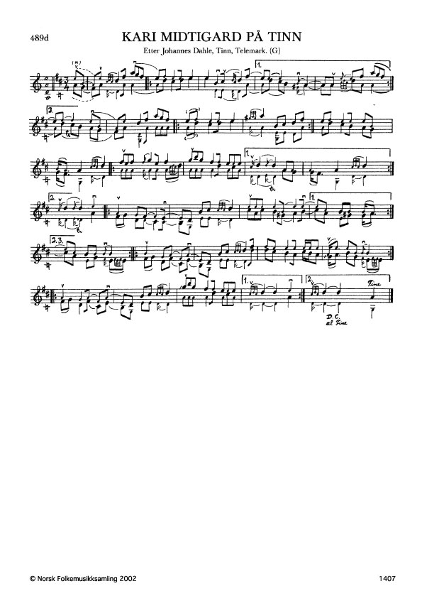 Kari Midtigard på Tinn. Etter Johannes Dahle, Tinn, Telemark. G. 1325, 1961. NRK magn. 2073. Jfr. Lindeman N.Fj. 144 og Nordbø 84.