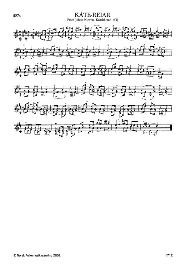 Kåte Reiar. Etter Johan Kleven, Krødsherad. Ø. 56, 1926. Kleven hadde slåtten etter far sin, Ola Helgesen Kleiva (Gammel-Kleven). Kåte Reiar var ein stordansar fra Sigdal.