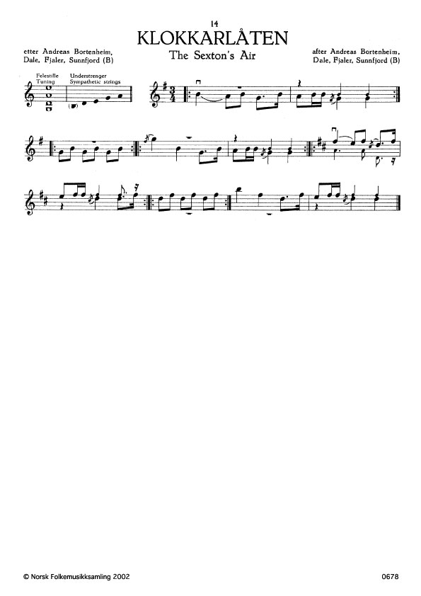 (Klokkarlåten) B. 990. Oppskr. 1936. Bortenheim hadde slåtten etter godfar sin, Jon Bortenheim, Fjalir, Sunnfjord.