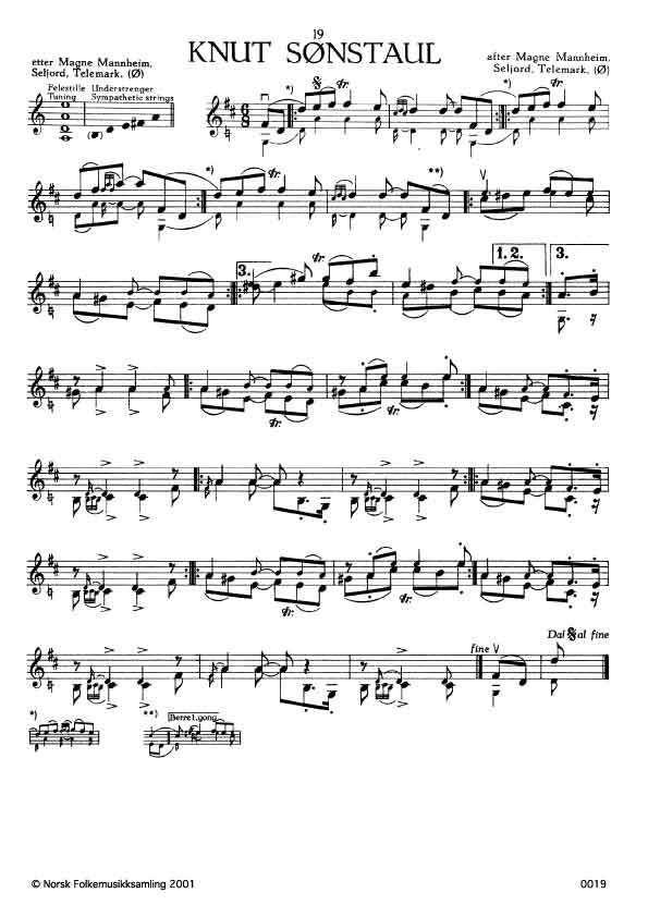 (Knut Sønstaul) Ø. 326. Oppskr. 1951 etter opptak i NRK. Det er ein Dale-slått. Slåttenamnet etter spelmannen Knt B. Sønstaul (1771-1863). Dotter hans Knut Sønstaul var mor til Knut Dale. Jfr. G. 911.