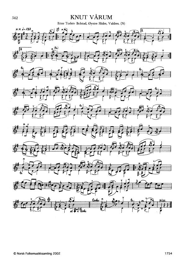 Knut Vårum. Etter Torleiv Bolstad, Øystre Slidre, Valdres. N. 1977. Td. 1691. Jfr. band 5 nr. 402. Andre variantar: G. 1509, etter T. Bolstad.