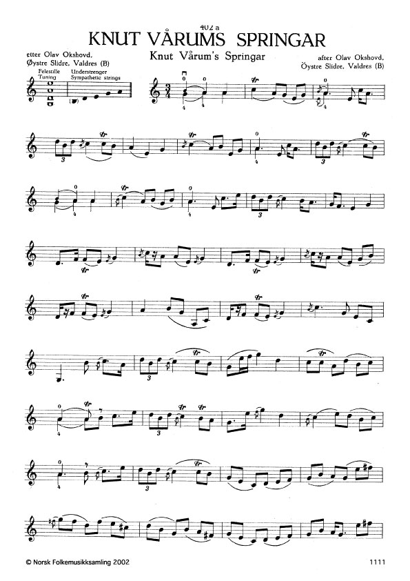 (Knut Vårums springar) B. 1043b. Oppskr. 1934. Okshovd hadde lært slåtten av far sin, Gullik Okshovd. Slåttenamnet etter spelmannen Knut Olsen Vøle frå garden Bjelhøle, Hegge, Øystre Slidre, Valdres. Han var mykje nytta til dyrlækjar i dei øvste Valdresbygdane. Vårum er ei eldre skriftform. No heiter garden Vøle.