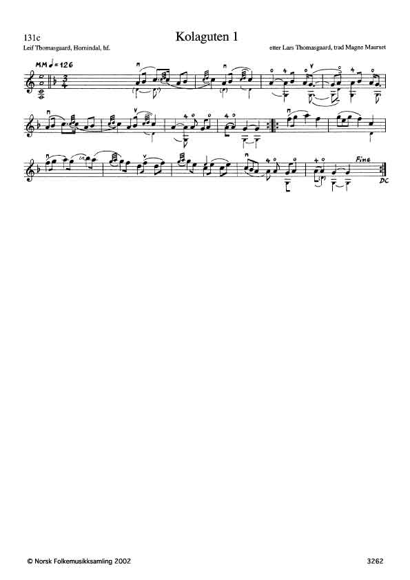 På Thomasgaards egen opptegnelse (Bjørndal nr 2121) kalles den "Springdans etter Magne Maurset", mens Bjørndal har føyd til "Ein av Kolagutane". Thomasgaard spiller på stillet f - c'- a'- e'' (notasjon d - c'- a'- e'' må være en glipp).