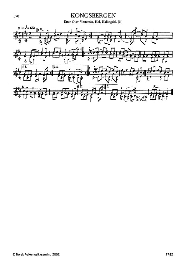 Kongsbergen. Etter Olav Vestenfor, Hol, Hallingdal. N. 1978. Td. 653. Jfr. band 6 nr. 488.