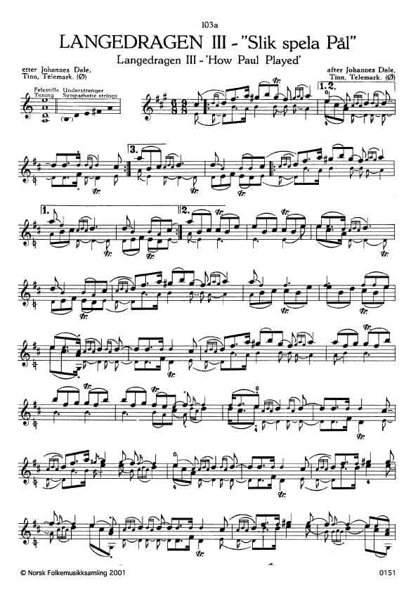 (Langedragen III) Ø. 382. Oppskr. 1922. Dale hadde han etter farfaren Knut Dale. "PåI" er ein.av løytnantsdrengene, sjå merknaden til nr. 73a. Langedragen III er og kalla Luråsen III. 103a-d er variantar.
