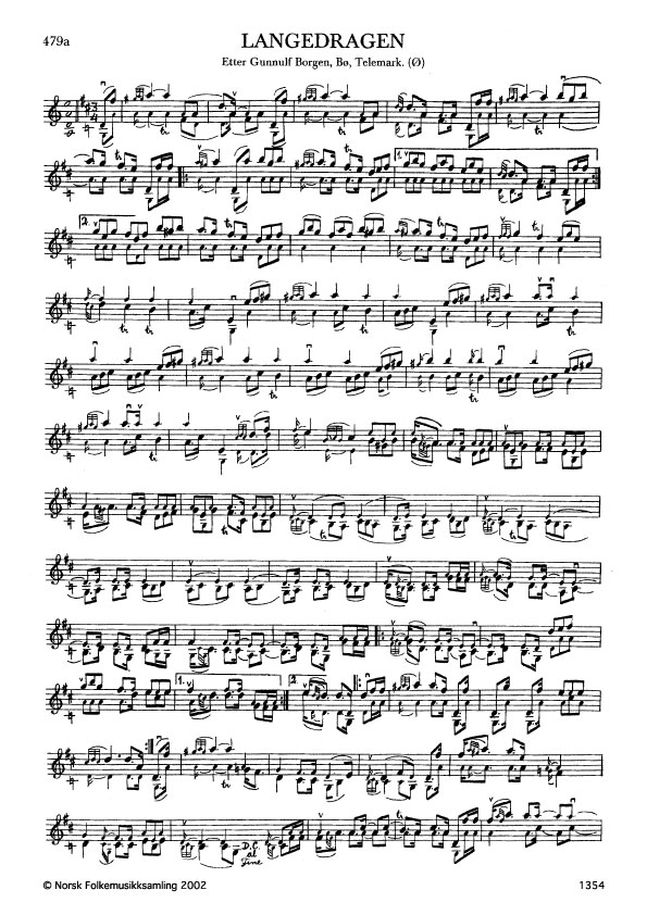 Langedragen. Etter Gunnulf Borgen, Bø, Telemark. Ø. 237, 1933. Øystein Langedrag, Seljord, var far til spelemannen Leiv Sandsdalen.