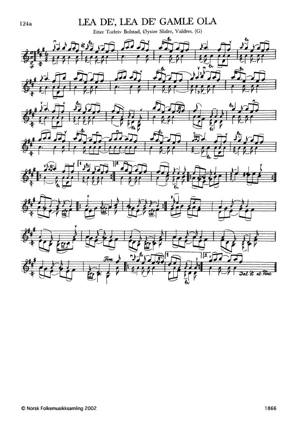 Lea de', lea de', gamle Ola. Etter Torleiv Bolstad, Øystre Slidre, Valdres. G. 1520, 1964. NRK magn. 52984. Jfr. band 1 nr. 112.