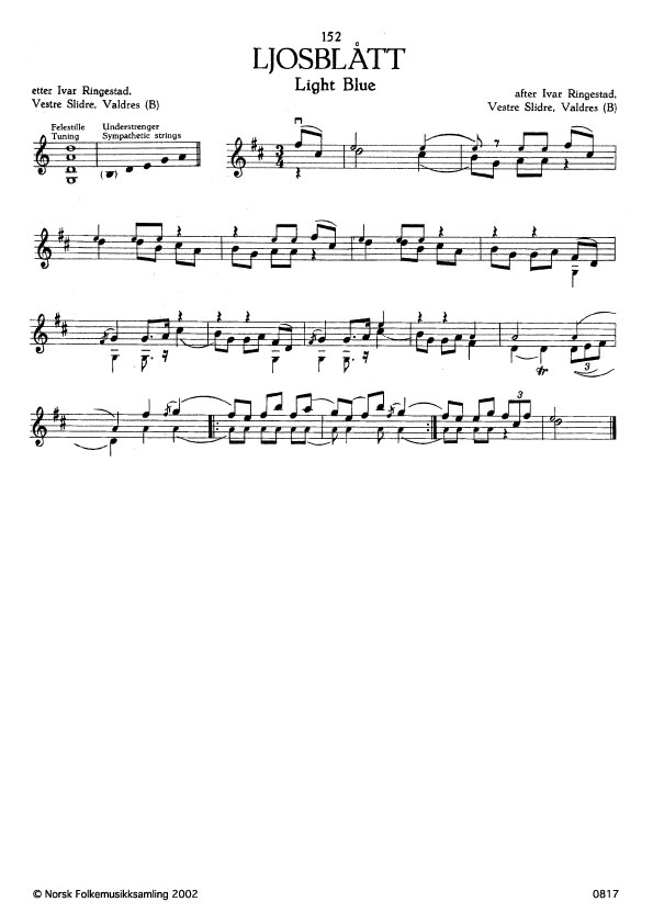 (Ljosblått) B. 472. Oppskr. 1912. Ringestad hadde slåtten etter Ola Hamresbrøtin, Vestre Slidre, Valdres. Slåttenamnet er etter stillet som vart kalla slik.