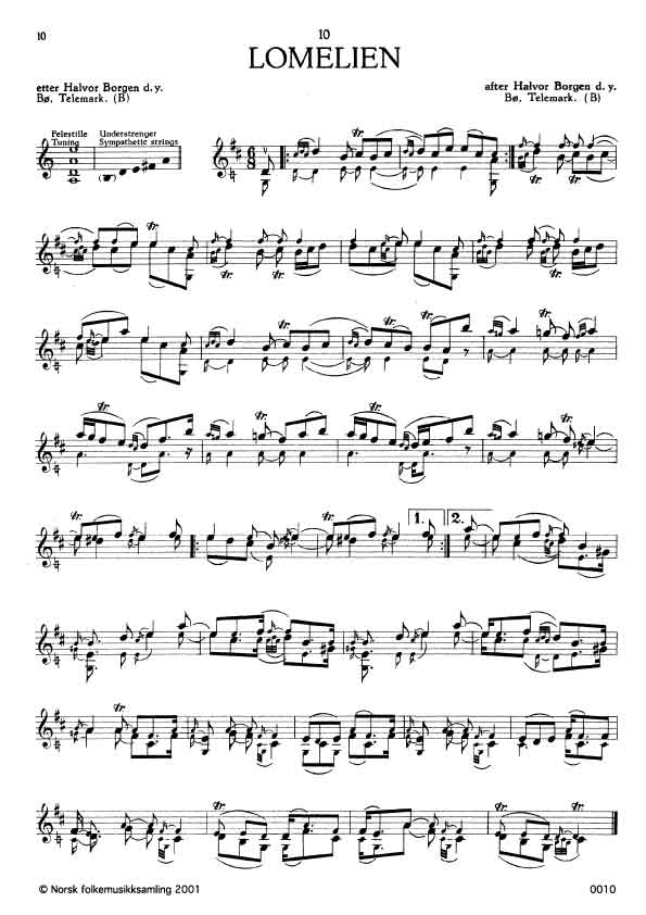 (Lomelien) Ø. 61. Oppskr. 1917 etter grammofoninnspeling. William Farre nr. 899. Innspela mellom 1910-15. Borgen hadde lært slåtten av faren Halvor Borgen d.e. eller av Lars Fykerud. Jfr. oppskrifta B. 2175.
