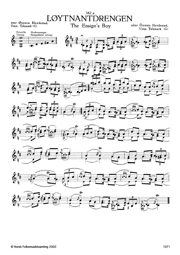 (Løytnantdrengen) G. 716. Oppskr. 1918. Slåttenamnet etter spelmennene "Løytnantdrengene" frå Nore, Numedal. Det var brørne Halvor, Pål, Torstein og Gunnar. Dei var alle spelmenn. Namnet fekk dei av di far deira, Knut Halvorsen Øyanhaugen i ungdomen hadde vore dreng hos ein løytnant i Tønsberg.