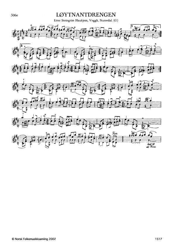 Løytnantdrengen. (Tangeslåtten). Etter Steingrim Haukjem, Veggli, Numedal. G. 1180, 1960. Jfr. Ø. 95.