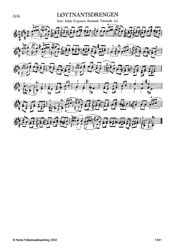 Løytnantsdrengen. Etter Aslak Torjussen, Rauland, Telemark. G. 690, 1922. Jfr. band VI, 506e.