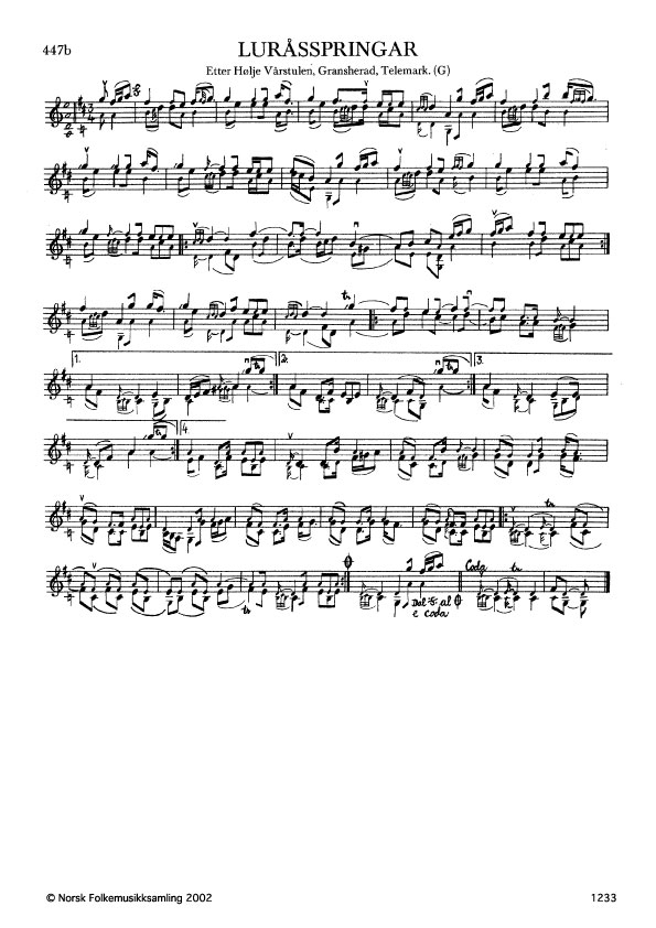 Luråsspringar. Etter Hølje Vårstulen, Gransherad, Telemark. G. 1126, 1960. NRK magn. 2019. Jfr. Ø. 156 og 498.