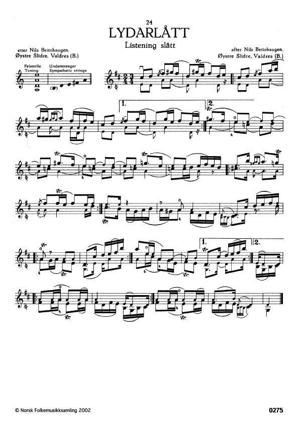 (Lydarlått) B. 446. Oppskr. 1912. Beitohaugen hadde slåtten etter Gullik Okshovd, Øystre Slidre, som døydde 1900, 75 år gamal.