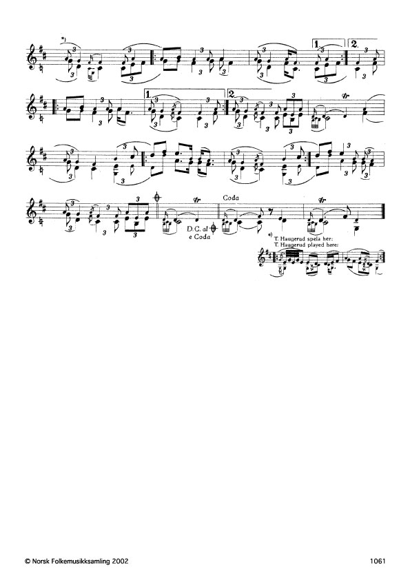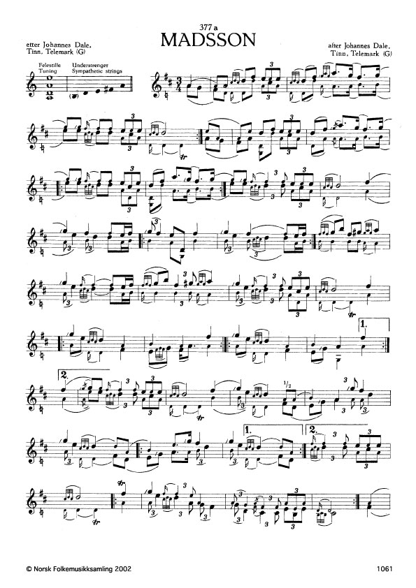 (Madsson) G. 1241. Oppskr. 1961 etter opptak i NRK. Slåttenamnet etter spelmannen Torstein Madsson, Tinn, Telemark. Jfr. G. 1143.