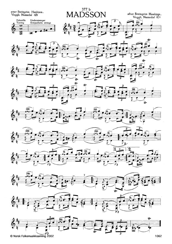 (Madsson) Ø. 85. Oppskr. 1921. Haukjem hadde truleg slåtten etter Steinar Gladheim, Veggli. Jfr. Haugerud Slåttar nr. 15, Ø. 335.