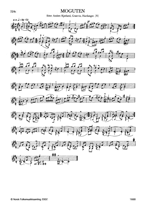 Moguten. Etter Anders Kjerland, Granvin, Hardanger. N. 1976. Td. 1365. Form etter Halldor Meland. Ein variant av Gull-lykjelen i form etter Oddmund Urheim.