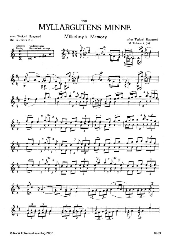 (Myllargutens minne) G. 1342. Oppskr. 1961 etter opptak i NRK. Haugerud hadde lært slåtten av Olav Flatland som reiste til Amerika kring 1890. Olav var bror til Hans Flatland som hadde vore mykje saman med Myllarguten. Jfr. Nordbø 65, Ø. 304, B. 159 og 1003.