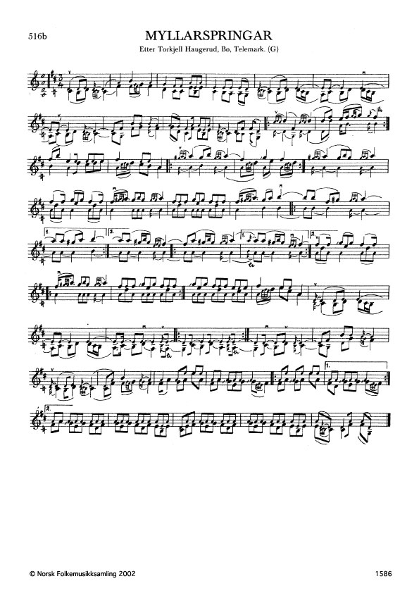 Myllarspringar. Etter Torkjell Haugerud, Bø, Telemark. G. 1385, 1961. NRK magn. 53259. Haugerud hadde slåtten etter Halvor Flatland og Anders Lia, Bø.