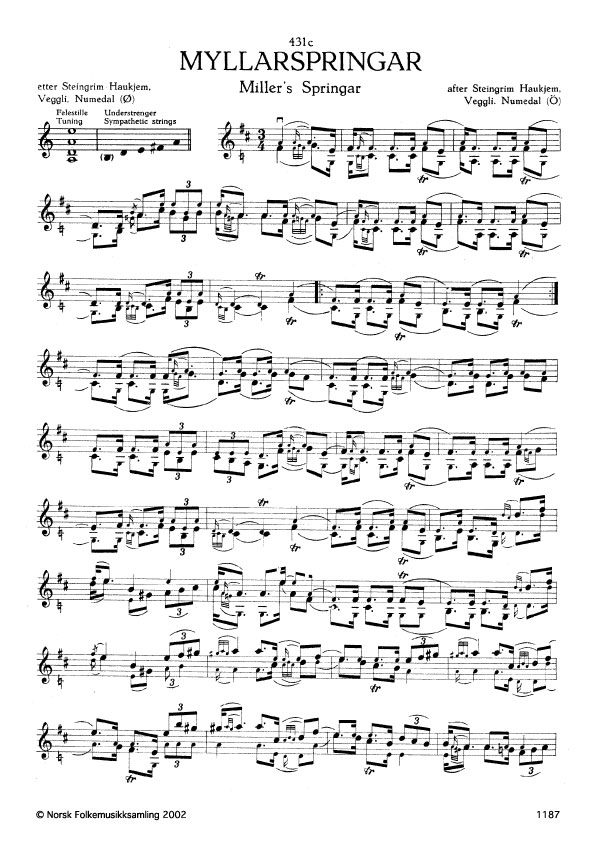 (Myllarspringar) Ø. 114. Oppskr. 1921. Haukjem hadde slåtten etter ein tinndølspelmann.