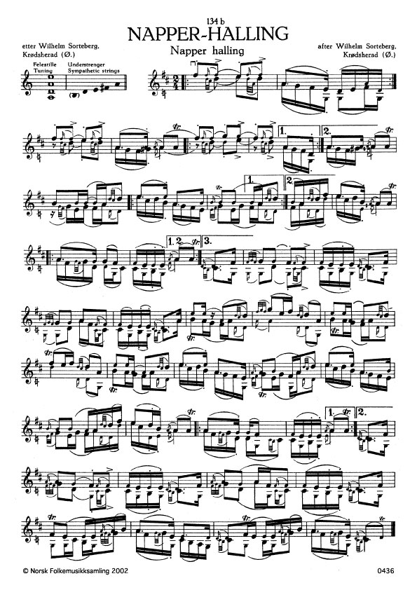 (Napper-halling) Ø. 31. Oppskr. 1910. Sorteberg lærde slåtten på Drammensmarknamen av Olav Napper, Fyresdal.