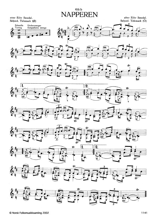 (Napperen) Ø. 62. Oppskr. 1913 etter innspeling på grammofon (Pathefon, W. Farre). Slåttenamnet etter spelmannen Olav Napper, Fyresdal, Telemark. Jfr. Nordbø 115.