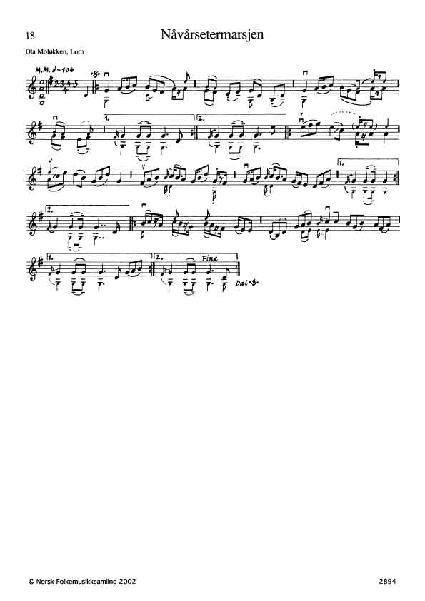 Slåtten er laget av Ola Moløkken. Ledetonen fis er ofte svært høy, det samme gjelder også h' foran c" av og til.