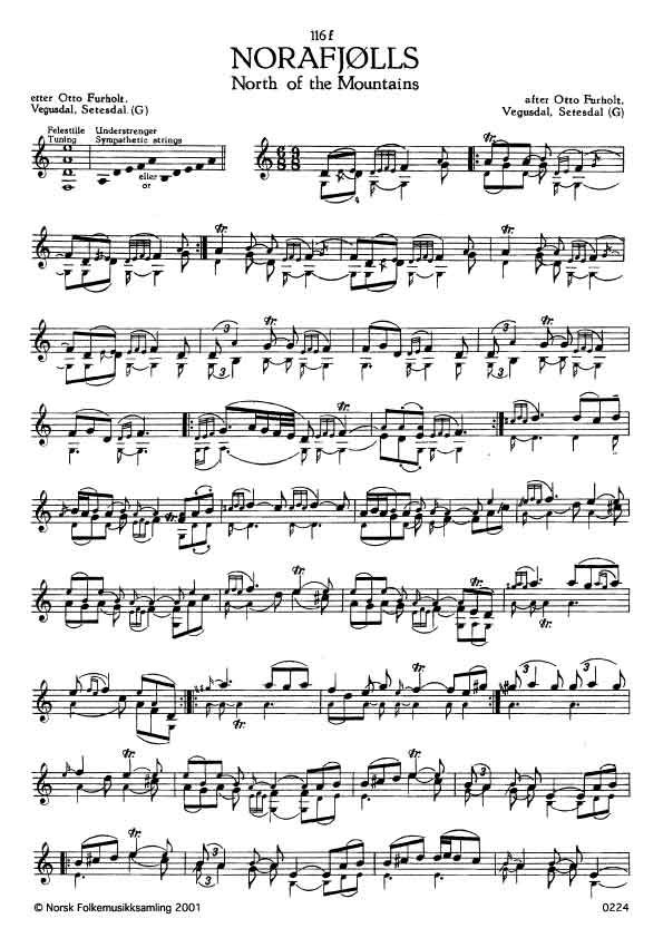 (Norafjølls) G. 1030. Oppskr. 1955 etter opptak i NRK. Furholt hadde lært slåtten av Halvard S. Rysstad, Hylestad, Setesdal.