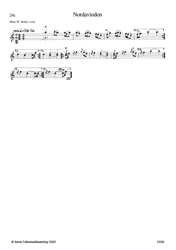 Etter spelemenn i Vårdalen. "Detta ska vera ein leik som Loms-Jakup gjorde. Han vart liggjan' i ei sval på Lykre i Skjåk, og så høyrde'n på nordavinden susa, og så hadde'n lågå'n attpå de'". (Brimi).