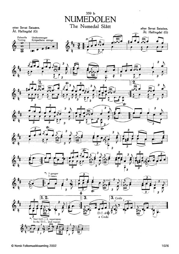 (Numedølen) G. 1445. Oppskr. 1961 etter opptak i NRK. Sataøen hadde slåtten etter Ola Dekko, Torpo, Ål, Hallingdal.