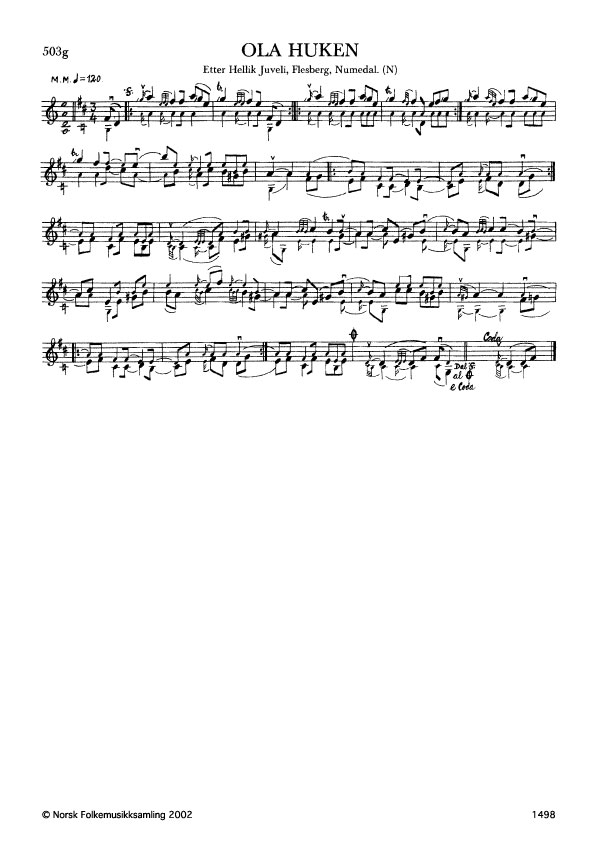Ola Huken. Etter Hellik Juveli, Flesberg, Numedal. N. 1975. Td. 1535. Juveli hadde slåtten etter Ole Nærlieie, Flesberg. Jfr. Ø. 535, Ravnåsen, etter H. Juveli.