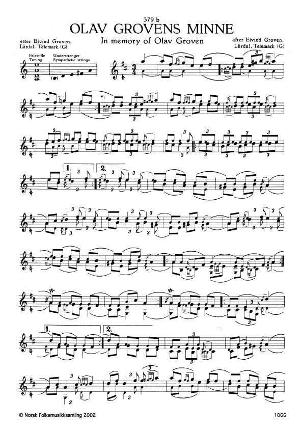 (Olav Grovens minne) G. 1156. Oppskr. 1959 etter opptak i NRK. Slåtten er laga av Olav Groven, Lårdal, Telemark.